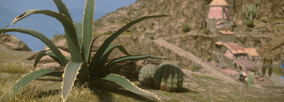 A succulent found most commonly among the mountainous region of Urqopacha, this hearty plant can set up just about anywhere with the proper care. Its has a wide range of uses for Alchemists and Culinarians alike. Its pointed leaves able to be sliced open to the yellow juice inside and used to treat severe burns, among other uses such as facial creams and gels to promote healthy itch-free skin or applied to hair to promote growth. It can even be used to create an Aloe juice, Fermented Aloe juice, Fruit and Aloe Jelly, and is an ingredient in tarts like Tart Turali Tart, and breads like Banana Ponzecake.